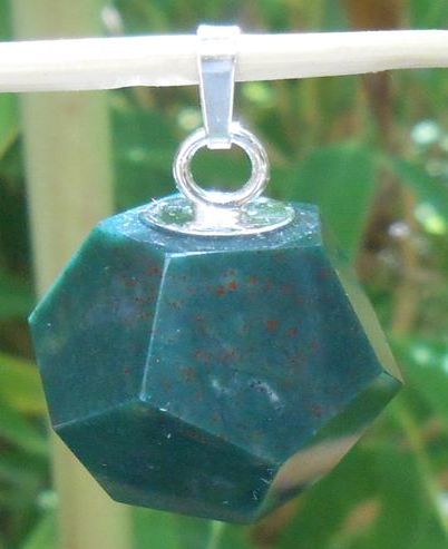 Eine Herzenssache: Die handgeschliffenen Schmuckstücke stellen mit ihren 12 Fünfeck-Flächen und den darin enthaltenen goldenen Schnitten den 5-ten platonischen Körper, den Pentagondodekaeder ( = Dodekaeder) dar. Dieser geometrische Körper bildet (vereinfacht gesagt) Himmel und Erde als kosmische Ganzheit ab.